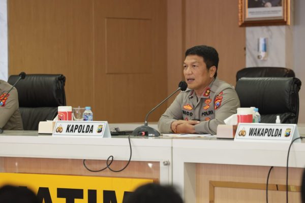 Memastikan kesiapan pertunjukan kolosal Gebyar Malam Puncak Nusantara Gemilang Jatim 2022 pada H-3 ,Kapolda Jawa Timur Irjen Pol Nico Afinta bersama Waka Polda Jatim Brigjen Pol Slamet Hadi Supraptoyo dan beberapa Pejabat Utama Polda Jatim menggelar rapat koordinasi ( rakor….red) bersama panitia pelaksana di Rupatama Semeru Polda Jatim,Jumat (12/8/22).