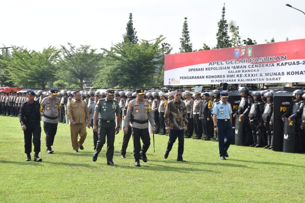 Kapolda Kalbar Irjen Pol. Pipit Rismanto, S.I.K., M.H. memimpin langsung pelaksanaan apel gelar pasukan Operasi Kepolisian “Aman Cendikia Kapuas 2023” dalam rangka pengamanan kongres HMI Ke-XXXII dan Munas Komati Ke-XXV yang akan dilaksanakan di Provinsi Kalbar.