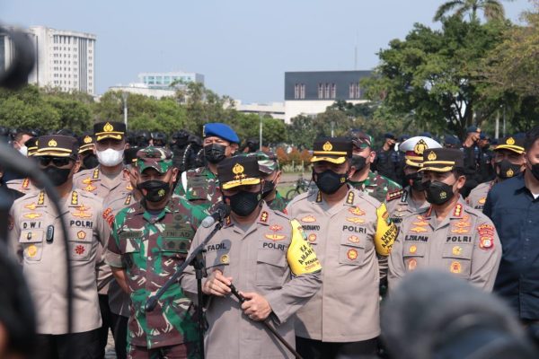 Persindonesia.com Jakarta – Kapolda Metro Jaya Irjen Fadil Imran dalam memimpin apel pengamanan demo mahasiswa 11 April 2022 di lapangan Monas, Jakarta Pusat. Fadil memberikan sejumlah arahan kepada personel, salah satunya larangan penggunaan senjata api.