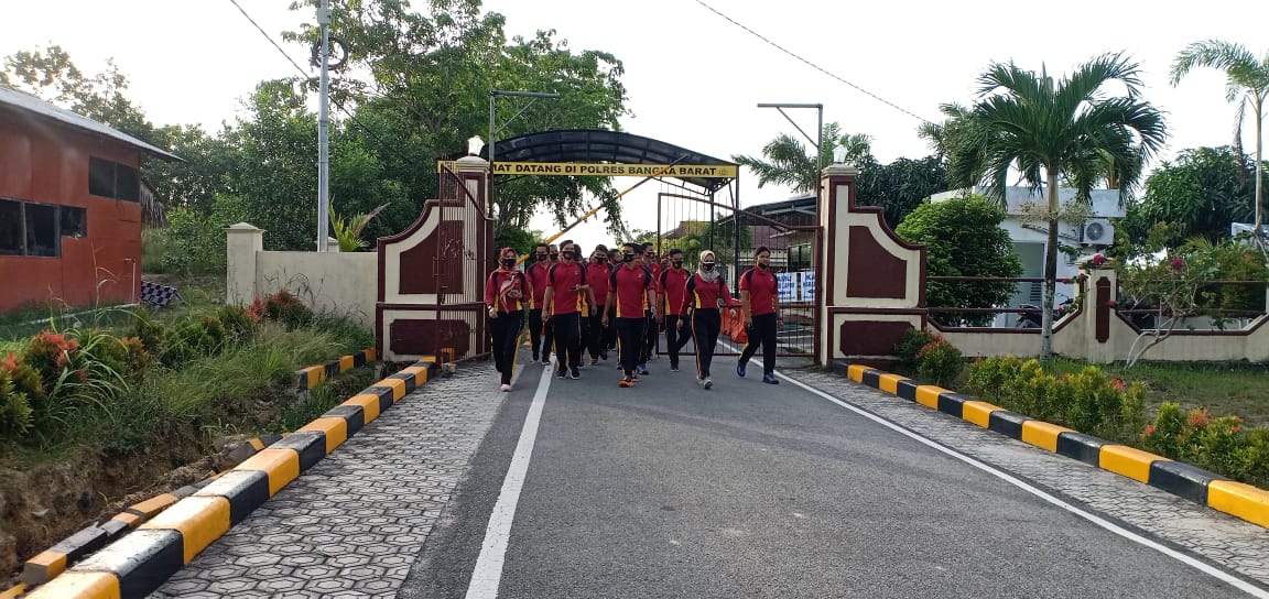 Persindonesia.com Bangka Barat — Guna menjaga kebugaran, Anggota Kepolisian Polres Bangka Barat melaksanakana olahraga pagi dengan joging bersama, Jum’at (05/02/2021)