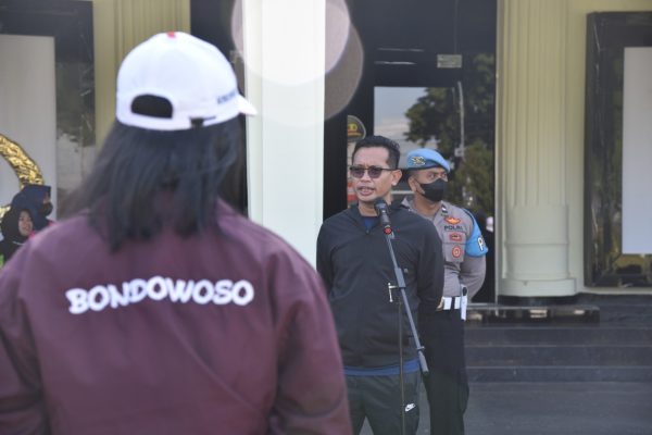 BONDOWOSO, Persindonesia – Dua Tim atlit bola voly terdiri dari 1 tim putra dan 1 tim putri kontingen Kabupaten Bondowoso dalam mengikuti Pekan Olah Raga Propinsi (Porprov) Jatim VII yang digelar di 4 Kabupaten, yakni Bondowoso, Situbondo, Jember dan Lumajang, Minggu (26/6/2022) pagi dilepas oleh Kapolres Bondowoso AKBP. Wimboko selaku Pembila PBVSI Bondowoso dari halaman Mapolres Bondowoso untuk bertanding di GOR PKPSO Kabupaten Jember.