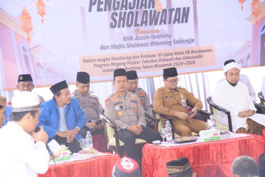 BONDOWOSO, Persindonesia.com – Kapolres Bondowoso AKBP Harto Agung Cahyono, S.H., S.I.K., M.H., bersama jajaran Forkopimda Kabupaten Bondowoso menghadiri kegiatan sholawatan dan doa bersama di Lapas Kelas IIB Bondowoso. Kegiatan berlangsung pada Selasa malam dan diikuti dengan cukup antusias oleh warga binaan pemasyarakatan. (9/12/25)