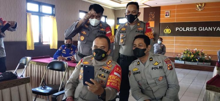 Dalam video call ini Kapolres Gianyar didampingi oleh Kabag SDM Kompol A.A. Gede Arka, S.H, M.H., Kabag Ops Kompol I Wayan Latra, S.H.,MH, Kapolsek Tegalalang AKP I Ketut Sudita, Kasipropam Iptu I Made Mulata, Kasidokkes Ipda dr. Ni Wayan Irmawati dan Paur Subbagwatpers Ipda I Nyoman Hadi Subari HS.