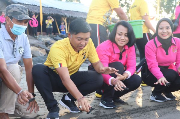 Persindonesia.com Jembrana – Kapolres Jembrana AKBP I Dewa Gde Juliana didampingi Wakapolres Jembrana Kompol Losa Lusiano Araujo beserta jajarannya melepas liarkan satwa tukik sebanyak 76 ekor di Pantai Desa Perancak tepatnya di penangkaran Penyu Kurma Asih Bajar Mekar Sari, Desa Perancak, Kecamatan Jembrana, Kabupaten Jembrana.