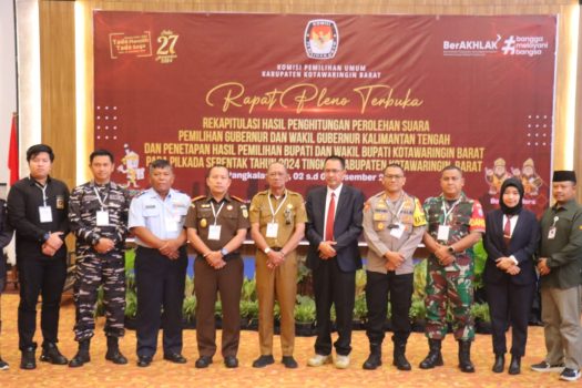 Polres Kobar – Kapolres Kotawaringin Barat AKBP Yusfandi Usman, S.I.K.,M.I.K., menghadiri kegiatan rapat Pleno terbuka rekapitulasi hasil perhitungan perolehan suara pemilihan Gubernur dan Wakil Gubernur serta Penetapan hasil pemilihan Bupati dan Wakil Bupati Kobar Pada Pilkada serentak tahun 2024 tingkat Kab. Kobar. Selasa (03/12/2024) pagi.