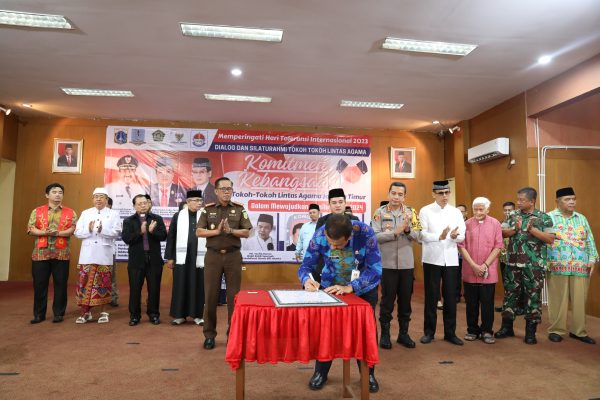Setelah sambutan-sambutan, dilanjutkan dengan pembacaan Deklarasi Komitmen Kebangsaan Tokoh – Tokoh Lintas Agama Jakarta Timur oleh masing-masing perwakilan Lintas Agama. Setelah itu dilakukan penandatanganan secara simbolis Deklarasi Pemilu Damai Tahun 2024 oleh Forkopimko dan Tokoh-tokoh Lintas Agama Jakarta Timur.