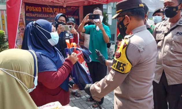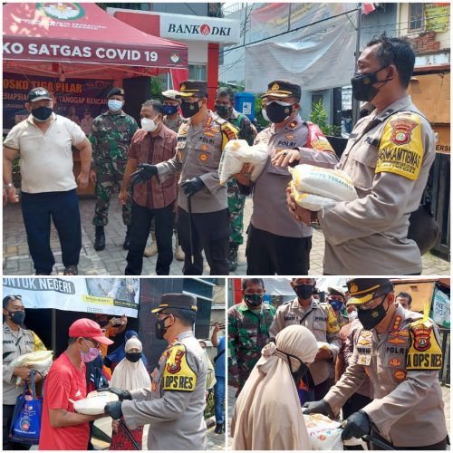 Kapolres Metro Jakarta Timur didampingi Kapolsek Jatinegara Kompol Yusuf Suhatma, SH, memberikan bantuan sosial secara Simbolis kepada warga yang sedang Isolasi Mandiri serta menghimbauan kepada warga, “Jika tidak ada keperluan yang mendesak agar tetap di rumah saja.