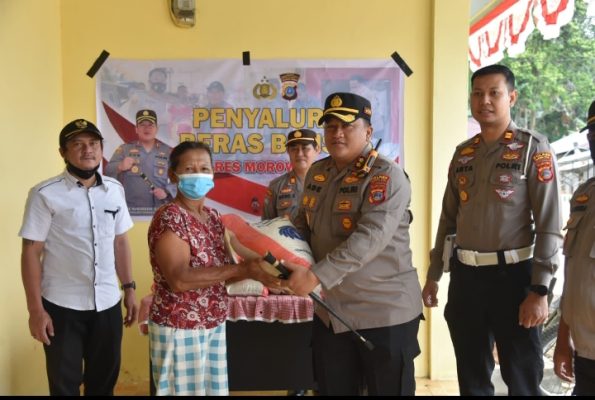 Kapolres Morowali Utara Bagikan 5 Ton Beras Geratis Kepada Warga Kurang Mampu