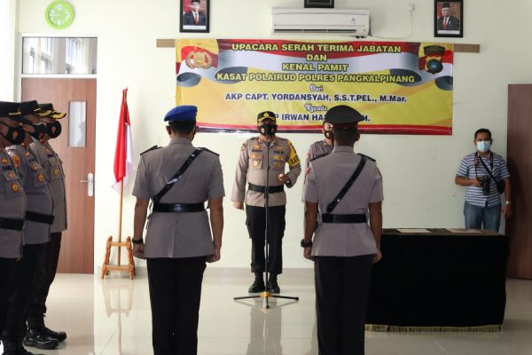 “Kita menyampaikan ucapan terimakasih kepada AKP Yordansyah, yang telah mengabdi di Polres Pangkalpinang dan selamat bertugas ditempat yang baru sebagai promosi jabatan, dan kami juga mengucapkan selamat datang kepada AKP Irwan Haryadi, S,H. sebagai Kasat Polair yang baru,semoga secepatnya bisa beradaptasi dengan lingkungannya,” ujar Kapolres.