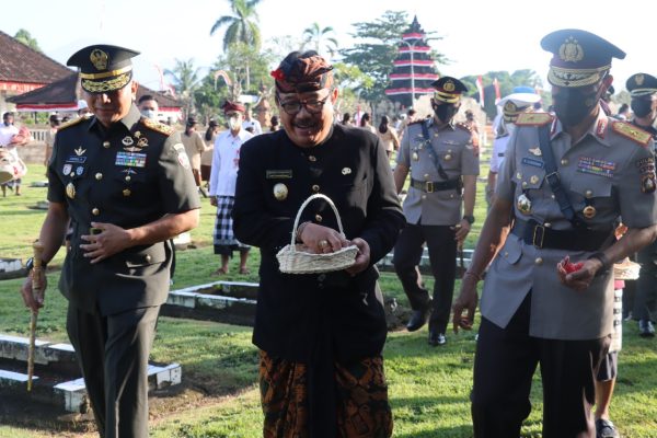 Polres Tabanan – Dalam rangka menyambut dan memperingati hari jadi Provinsi Bali ke-64 Tahun 2022, telah dilaksanakan Upacara Ziarah dan Tabur bunga di Makam Pahlawan Pancaka Tirta, Kabupaten Tabanan, Kamis 11 Agustus 2022 pagi (pukul 08.00 Wita.