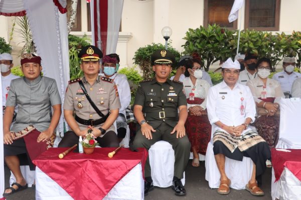 Selebihkan disampaikan bahwa “Berkat kerja keras Satgas Penanganan Covid-19 yang melanda Bali–Indonesia bahkan Dunia, didukung oleh semua komponen masyarakat Bali Covid-19 Bali terus menurun dan sudah stabil, ditandai menurunnya kasus baru, tingginya tingkat kesembuhan dan kematian yang mendekati Nol, dan Prov Bali masuk dalam katagori terbaik Nasional dalam penanganan Pandemi Covid-19 dengan capaian Vaksinasi Booster tertinggi se Indonesia, (disambut tepuk tangan oleh peserta Upacara).