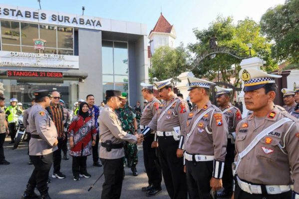 SURABAYA, persindonesia.com,- Apel gelar pasukan Operasi Lilin Semeru 2023 digelar di Mapolrestabes Surabaya, Kamis, 21/12/2023.