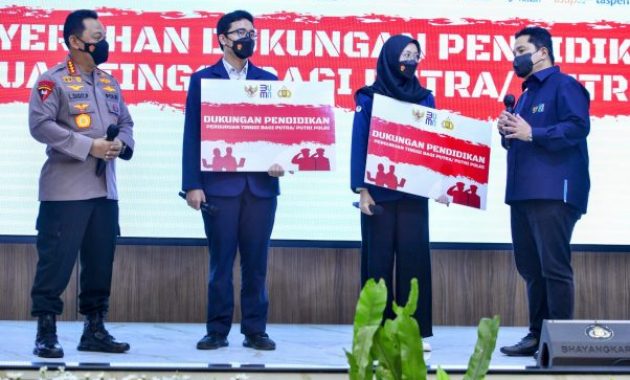 “Dan kita juga buktikan ketika saat Covid-19, pun distribusi bahkan vaksinasi ujung tombaknya di pihak Polri dan TNI. Karena itu dua tahun lalu diluncurkan program membantu putta-putri kepolisian yang pangkatnya baru perwira pertama untuk kita bantu pendidikannya,” tutup Erick.