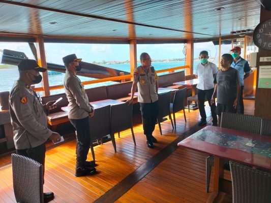 Terpantau di pelabuhan Benoa Dir Polairud Polda Bali KBP Soelistiono S.Ik MH beserta Kapolsek Benoa Kompol I Nyoman Wiranata, S.H. bersama staff Polsek Benoa melakukan Pengecekan Venue kegiatan Private Dinner di kapal Sea Safari pada hari Selasa tgl (20/9).