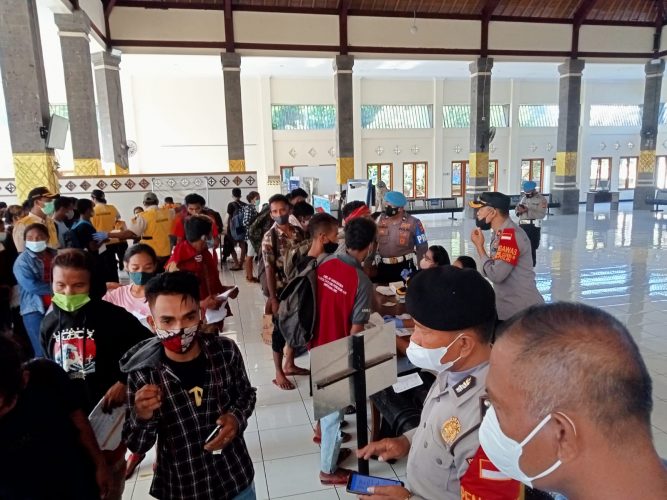 Untuk mengantisipasi adanya pelanggaran Prokes mengingat membludaknya penumpang, Kapolsek Benoa mengerahkan personilnya turun langsung ke lapangan untuk membantu instansi terkait dalam mengatur dan mengawasi para penumpang agar tetap mengikuti Prokes pada saat mau turun maupun mau naik ke kapal.