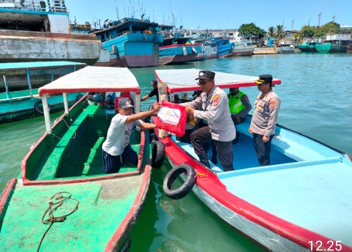 Kapolsek Benoa Kompol Tri Joko Widiyanto A.Md, S.H berinisiatif mendatangi para warga yg bekerja sebagai jasa sampan di tengah laut diselasela aktifitas mereka seraya memberikan bantuan kamanusiaan untuk negeri menggunakan sampan yang di sewa dari salah satu pemilik sampan.