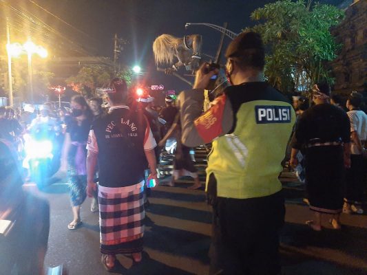 Berdasar pantauan dipapangan Polsek Denpasar Timur (Dentim) sinergi Linmas, TNI, Pecalang bersatu pad dalam mengamankan ogoh-ogoh, terpantau Polsek Dentim mengerahkan seluruh timnya guna memberikan pengayoman,pelayanan kepada masyarakat Dentim akan keamanan dalam melaksanakan ritual Pengerupukan, juga secara kontinyu menghimbau masyarakat agar tetap prokes dalam Pengerupukan.