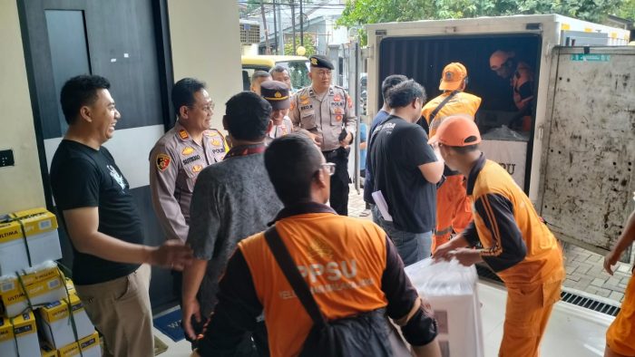 Persindonesia.com Jakarta – Kapolsek Duren Sawit AKP Sutikno bersama Wakapolsek dan anggota Polsek Duren Sawit melakukan pengecekan pendistribusian logistik pemilu di GOR Duren Sawit Jakarta Timur. Senin (12/02/2024) siang.
