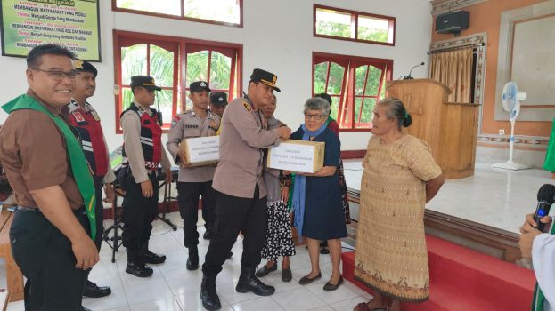 Pada pukul 09.00 WITA, Kapolsek Gilimanuk KOMPOL I KOMANG MULYADI, S.H., M.M., didampingi Panit Binmas Ipda Ketut Budiasa beserta anggota, Bhabinkamtibmas Kelurahan Gilimanuk Aiptu Nengah Artana, dan Briptu Teguh Santoso, melaksanakan kegiatan sosial dengan memberikan bantuan sembako kepada lansia umat Kristiani yang baru selesai melaksanakan kebaktian di Gereja GKPB Gilimanuk.
