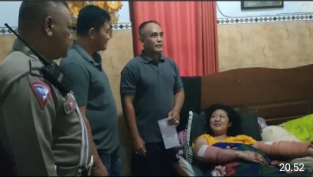 Didampingi Kanit Lantas Polsek Gilimanuk, Iptu Gede Sedana, serta dua orang personel lainnya, Kapolsek mengunjungi rumah Aiptu Pande Ketut Adi Sumantri, anggota Provost Polsek Gilimanuk, yang beralamat di Banjar Melaya Tengah Kaja, Desa/Kecamatan Melaya. Kedatangan Kapolsek disambut haru oleh keluarga, terutama sang istri, Euis Ekayani, yang mengalami luka bakar akibat semburan api dari gas bocor, ketika menghidupkan pemantik untuk keperluan memasak pada sore hari Selasa, tanggal 22 April 2025.