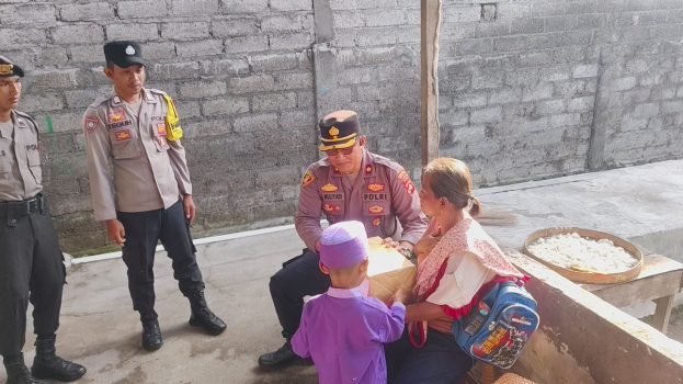 Dalam kesempatan tersebut, Kapolsek Gilimanuk menyerahkan bantuan paket sembako secara langsung kepada Ibu Iluh Suriati, yang ditinggal wafat oleh suaminya dan kini harus berjuang sendiri menghidupi anaknya. Bantuan ini diharapkan dapat meringankan beban ekonomi serta membantu memenuhi kebutuhan sehari-hari mereka.