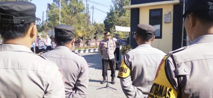 Kapolsek Kintamani-Kapolsek Kintamani Kompol Ruli Agus Susanto, didampingi Pejabat Polsek Kintamani bersama seluruh anggota Polsek Kintamani melaksanakan apel pagi di Mako Polsek Kintamani, Selasa (10/10/2023).