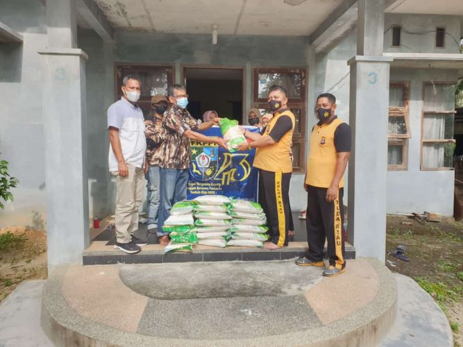TAPUNG – Kapolsek Tapung Kompol Sumarno, Sabtu sore (02/10/2021) menyerahkan bantuan Sembako melalui FKPPI Desa Gading Sari, untuk diberikan kepada Purnawirawan dan Warakawuri yang ada di Desa Gading Sari.