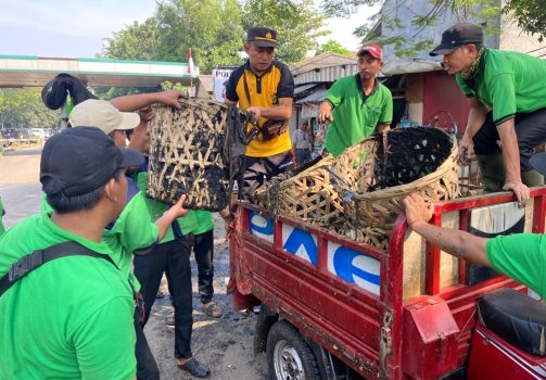 “Pelaksanaan giat bersih hari ini adalah membersihkan di selokan samping Polsubsektor Pasar Induk. Jaga kekompakan sinergitas semuanya,” ujar Manager Pd. Pasar Induk Kramatjati.