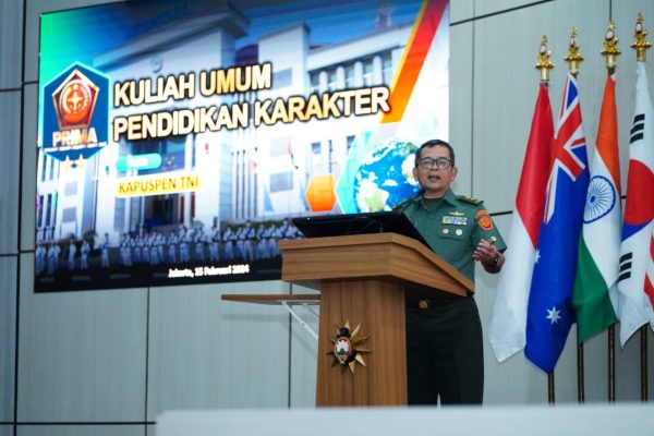 Persindonesia.com Jakarta (Puspen TNI). Pendidikan karakter adalah bentuk penyempurnaan diri tiap individu secara konsisten dan melatih kemampuan diri untuk menentukan kemajuan generasi bangsa dimasa yang akan datang. Hal tersebut disampaikan oleh Kapuspen TNI Mayjen TNI Dr. Nugraha Gumilar, M.Sc., ketika memberikan kuliah umum dihadapan 183 Siswa Dikreg Seskoal Angkatan 62, bertempat di Aula Samadikun Seskoal, Jakarta Selatan, Kamis (15/2/2024).