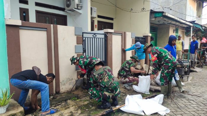 Karya Bakti Babinsa, Antisipasi Banjir Bersihkan Saluran Air