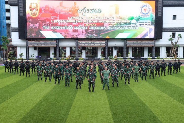 Kepala Staf Angkatan Darat (Kasad) Jenderal TNI Andika Perkasa, memberangkatkan 50 prajurit TNI AD untuk mengikuti latihan bersama “Safkar Indopura” ke-33 dengan tentara Singapura, bertempat di Lantai Dasar Gedung E Mabesad Jakarta, Kamis (28/10/2021).