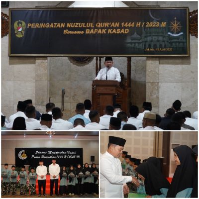 Persindonesia.com Jakarta, Bertempat di Pusat Pembekalan Angkutan Angkatan Darat (Pusbekangad), Senin (10/4/2023), Kepala Staf Angkatan Darat (Kasad) Jenderal TNI Dr. Dudung Abdurachman menghadiri peringatan Nuzulul Qur’an 1444 H/2023 M sekaligus memberikan Ceramah Hikmah Nuzulul Quran dan menjadi imam shalat Tarawih.