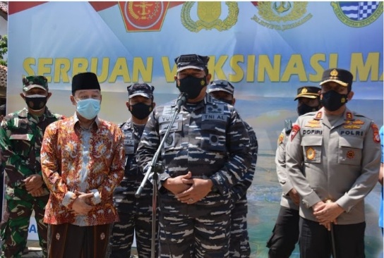 Kepala Staf Angkatan Laut (Kasal) Laksamana TNI Yudo Margono, SE, MM, mendapat kesempatan melakukan vaksinasi serbuan yang ditargetkan tiga ribu vaksin jenis Sinovac. Hadir Bersama istri Ny. Vero Yudo Margono, pejabat utama Mabesal dan Pangkoarmada I Laksda TNI Arsyad Abdullah, SE,MAP, serta Danlantamal III, Danlanal Cirebon dan Forkopimda Kabupaten Cirebon, Laksamana Yudo mengatakan bahwa vaksinasi yang di gelar TNI AL guna memenuhi target program pemerintah dalam vaksinasi nasional untuk mempercepat penanganan Covid-19 khususnya di Kabupaten dan Kota Cirebon.
