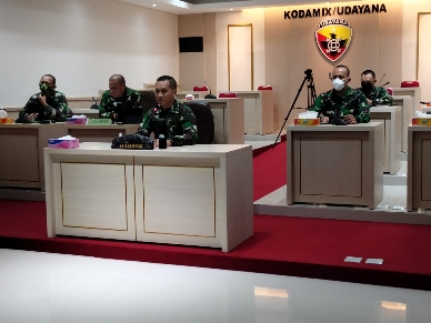 Saat rapat melalui Vidcon yang dipimpin oleh Kasdam IX/Udayana Brigjen TNI Candra Wijaya dan didampingi Asops Kasdam IX/Udayana, pada Sabtu (30/1/2021) bertempat di Ruang Yudha Puskodalopsdam IX/Udayana tersebut. Kasdam menyampaikan bahwa seluruh Satuan Jajaran Kodam IX/Udayana, agar meningkatkan lagi Operasi Pendisiplinan Protokol Kesehatan dalam Penanganan Covid-19 terutama di ruang-ruang publik seperti pasar, tempat-tempat wisata, mall dan tempat-tempat lain yang dapat menimbulkan berkumpulnya orang.