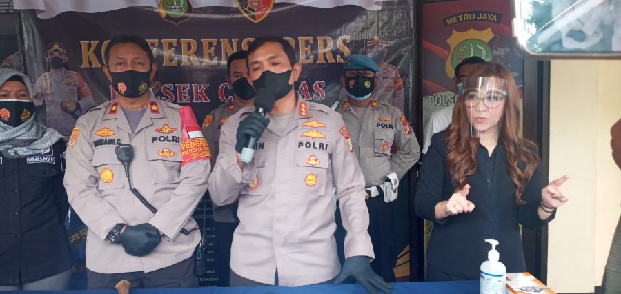 Kapolres Metro Jakarta Timur Kombes Pol Erwin Kurniawan selenggarakan Koferensi Pers di halaman Polsek Ciracas Polres Metro Jakarta Timur, pada Jum’at 22/10/2021.