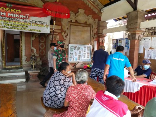Persindonesia.com Jembrana – Demi kelancaran proses penyaluran Bantuan Langsung Tunai Dana Desa (BLTDD) sebesar Rp.300.000 kepada warga masyarakat yang terdampak Covid-19, Babinsa Desa Yehembang Koramil 1617-02/Mendoyo Serda Joko Sp turut serta mengawal serta melakukan pengamanan. Selain itu Serda Joko Sp juga mengingatkan warga penerima BLTDD agar tidak lengah terhadap bahaya Covid-19 dan menyampaikan bahwa Covid-19 masih ada, sehingga saat melaksanakan antre Protokol Kesehatan wajib dipatuhi, Jumat (13/05/2022)
