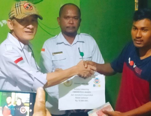 PERSINDONESIA.COM BELINYU – “Terimakasih kami ucapkan kepada masyarakat Bangka Belitung atau bapak/ibu yang sudah mendonasikan dana bantuan untuk adik bayi melalui rekening Bank Sumsel Babel atasnama Yayasan Media Babel Bersatu (YMBBB-red), sekali lagi terimakasih atas kepercayaan bapak/ibu kepada kami Kantor Berita Online Bangka Belitung (KBO Babel) dan YMBBB menyalurkan donasinya untuk misi kemanusiaan, semoga kebaikan bapak/ibu dibalas oleh Allah SWT dan menjadi ladang amal dan pahala, Aamiin”itulah ungkapan yang disampaikan oleh Rikky Fermana selaku Bendahara YMBBB dan didampingi Meyrest Kurniawan Kepala Sekretariat KBO Babel saat diwawancarai jurnalis Babel usai menyerahkan dana donasi kepada kedua orang tua sang bayi, beberapa hari lalu, Kamis (16/06/2022) di desa Air Kacip, Kecamatan Belinyu, Kabupaten Bangka.