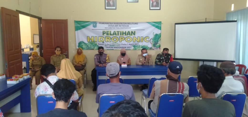 Pelatihan Pertanian Hidroponik yang diselenggarakan oleh Dinas Pertanian Kabupaten Belitung bertempat di Aula Kantor Desa Aik Katekok Jalan Telex Dalam RT 008/003 Desa Aik Ketekok Kabupaten Belitung.