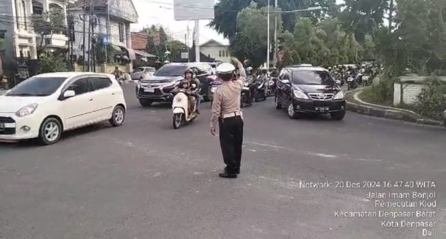 Denpasar – Guna menjaga kelancaran arus lalu lintas di jam-jam sibuk, Unit Lalu Lintas Polsek Denpasar Barat melaksanakan kegiatan pengaturan jalan raya setiap pagi, siang dan sore hari hingga menjelang petang. Kehadiran personel polisi lalu lintas (Polantas) di sejumlah titik strategis ini bertujuan untuk memastikan kelancaran dan ketertiban saat aktivitas masyarakat meningkat, khususnya di dipersimpangan yang kerap dipadati kendaraan, Jumat (20/12/2024).