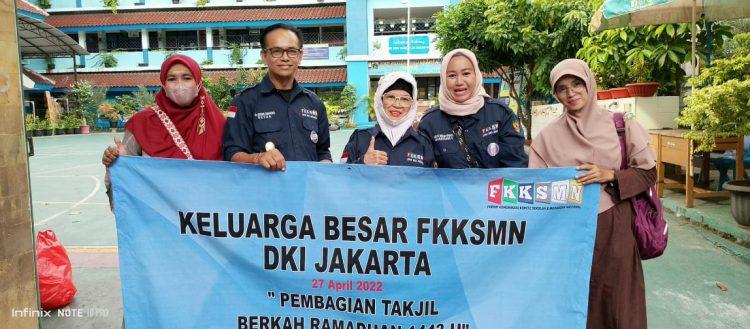 Persindonesia.com Jakarta Bulan Suci Ramadhan yaitu Bulan yang penuh Berkah dimanfaatkan betul oleh Keluarga Besar FKKSMN (Forum komunikasi Komite sekolah & Madrasah Nasional) DKI JAKARTA dengan melakukan kegiatan Sosial Amal berbagi kasih dengan membagi bagikan Tahjil untuk yatim Piatu pendorong gerobak, pemulung, ojek, kaum Duafa dan masyarakat sekitarnya dari depan Sekolah SMPN 30 JAKARTA UTARA pada hari Rabu tanggal 27 April 2022 menjelang berbuka Puasa.