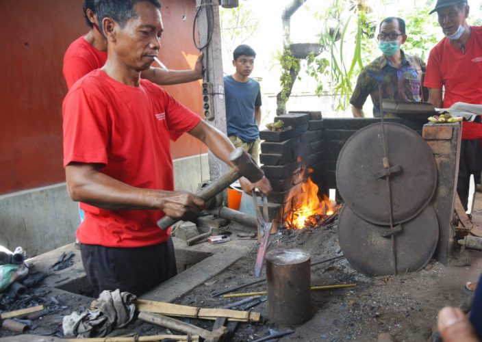 Sementara itu, ditemui di lokasi bimtek sekaligus ‘Prapen’ atau tempat pengapian logam setempat, salah satu pengrajin pande besi, Pande Putu Sadia mengaku secara turun-temurun warga setempat memang menggeluti profesi sebagai pande besi dengan produk alat rumah tangga seperti pisau, blakas (pisau besar,red), mutik (pisau kecil khas Bali,red) hingga peralatan pertanian seperti cangkul dan arit, bahkan juga mampu menghasilkan keris. “Namun tentu kita sangat berterimakasih adanya bimtek ini juga mampu memberikan inovasi baru bagi kami, dan juga harapan untuk membuka peluang pasar yang lebih luas,” katanya.