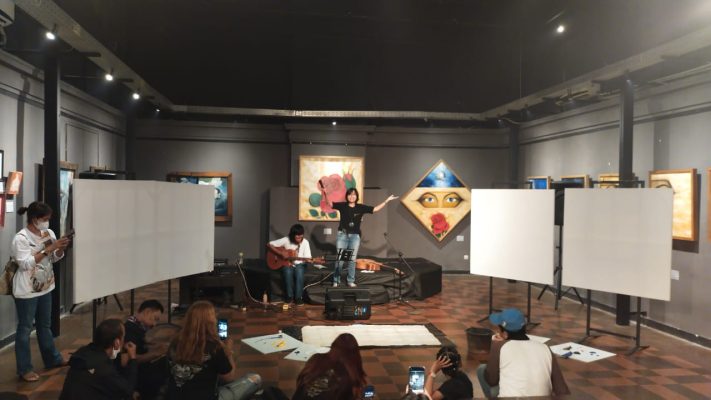 Hadir dalam acara penutupan pameran bersama, Ketua DKS (dewan kesenian surabaya) Cak Krisman, para pegiat seni juga dari musisi Surabaya, berlangsung tertib dan tetap menerapkan prokes, acara diakhiri dengan lagu kemesraan yang dibawakan cukup manis oleh mbak Dita. (RK)