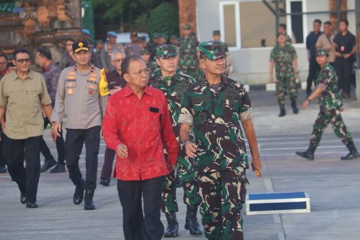 BADUNG – Gubernur Bali Wayan Koster, menghadiri penyambutan kedatangan Menteri Pertahanan RI Letjen TNI (Purn.) Sjafrie Sjamsoeddin di Base Ops Lanud I Gusti Ngurah Rai, Tuban, Kabupaten Badung pada Jumat, Sukra Umanis Warigadean, 4/4/2025 petang.