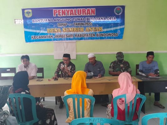 BONDOWOSO, Persindonesia – Bertempat di Balai Desa Sumber Anyar Kecamatan Jambesari Darus Sholah Kabupaten Bondowoso, Pemeritah Desa Sumber Anyar melaksanakan pencairan BLT-DD Tahap IV, V dan VI tahun 2022, mulai pukul 13-00.wib sampai dengan selesai.