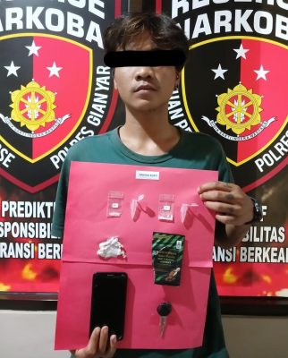 Kasat Narkoba Polres Gianyar, AKP I Nengah Sunia mengatakan dirinya bersama personil menangkap pelaku hari Rabu (24/4/2024) pukul 01.00 Wita di Jalan Raya Mas, Banjar Abianseka, Desa Mas, Kecamatan Ubud. Pelaku ditangkap pada saat mengambil paketan sabu-sabu. Dan saat dilakukan penggeledahan, petugas menemukan di tangan kiri pelaku barang bukti berupa 2 paket klip kecil berisikan serbuk kristal bening yang diduga sabu-sabu.