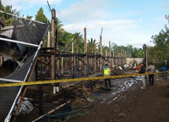 BANGLI|PersIndonesia.Com- Kandang ayam milik I Ketut Nuadi Indra Sastrawan yang berada di Banjar Puraja, Desa Peninjoan, Kecamatan Tembuku, Bangli terbakar pada hari Sabtu, (13/01/2024). Dalam musibah kebakaran tersebut kandang berikut 12.000 ekor ayam hangus terbakar.