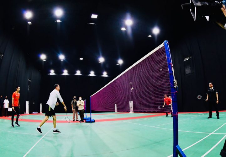 Bali (persindonesia.com) – Usai menyaksikan pertandingan BWF World Tour Finals 2021 yang digelar di The Westin Resort, Bali International Convention Center (BICC), Kabupaten Badung, Kamis, 2 Desember 2021, Presiden Joko Widodo menyempatkan bermain bulu tangkis bersama sejumlah atlet nasional.
