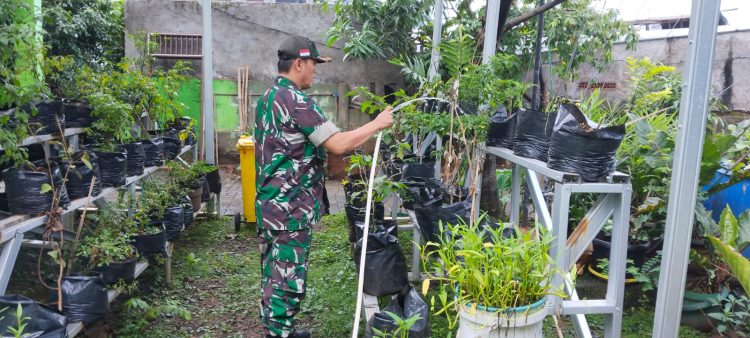 Kodam Jaya, Tangerang,Persindonesia.com – Dalam mempertahankan program dan mewujudkan ketahanan pangan Babinsa Kreo Koramil 04/Ciledug Kodim 0506/Tgr Serda Kasini melakukan perawatan tanaman terong, Cabai dan memberi makan ikan lele di MaKoramil 04/Ciledug, Minggu (09/04/2023).