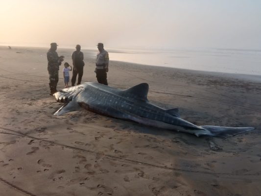 Persindonesia.com Jembrana – Ketiga kalinya ditempat yang sama di Pantai Banjar Yeh Kuning Desa Pekutatan, Jembrana, tepatnya disebelah barat Krematorium Bahagia, kembali ditemukan hiu paus yang sering disebut hiu tutul terdampar dalam kondisi sudah mati. Hiu tersebut ditemukan oleh warga sedang jalan-jalan di pantai sekira pukul 06.15 wita.