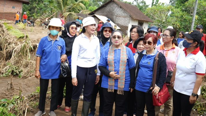 JEMBRANA- Ketua Badan Kerjasama Organisasi Wanita (BKOW) Provinsi Bali Ny.Tjokorda Putri Hariyani Ardhana Sukawati (Ny.Tjok Ace) beserta para pengurus BKOW Provinsi Bali dan para pengurus Wanita Katolik Republik Indonesia DPD Bali NTB turun langsung ke rumah warga terdampak banjir di Desa Sangkaragung, Jembrana, Jumat (21/10).